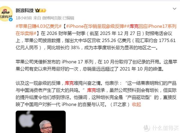 就连库克都对这个成绩感到惊讶,知道iPhone17系列销量会增加,但没想到会暴涨。
