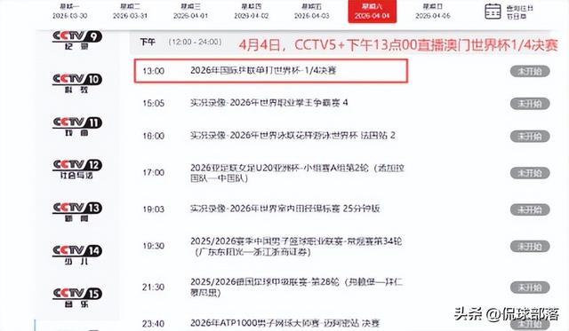 中央五台今天直播安排已经定好,继续全程跟进澳门世界杯,下午一点整CCTV5+转播四分之一决赛。
